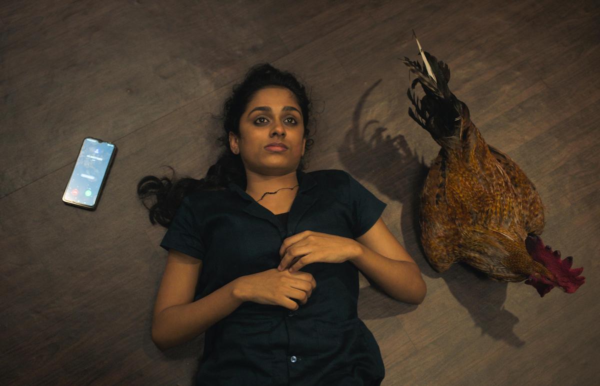 The parlour is a microcosm of modern womanhood in Kerala/India, seen through the eyes of Victoria (played with grace and intensity by Meenakshi Jayan, who spent a month at a parlour to get her part right) and her interactions with the female customers. As she travels in a bus to her workplace, a woman she knows hands her a rooster, which is meant to be sacrificed at a religious ceremony later. Her protests are ignored by the woman, and she is forced to carry the rooster to the parlour, and place it in a corner, with its legs tied.